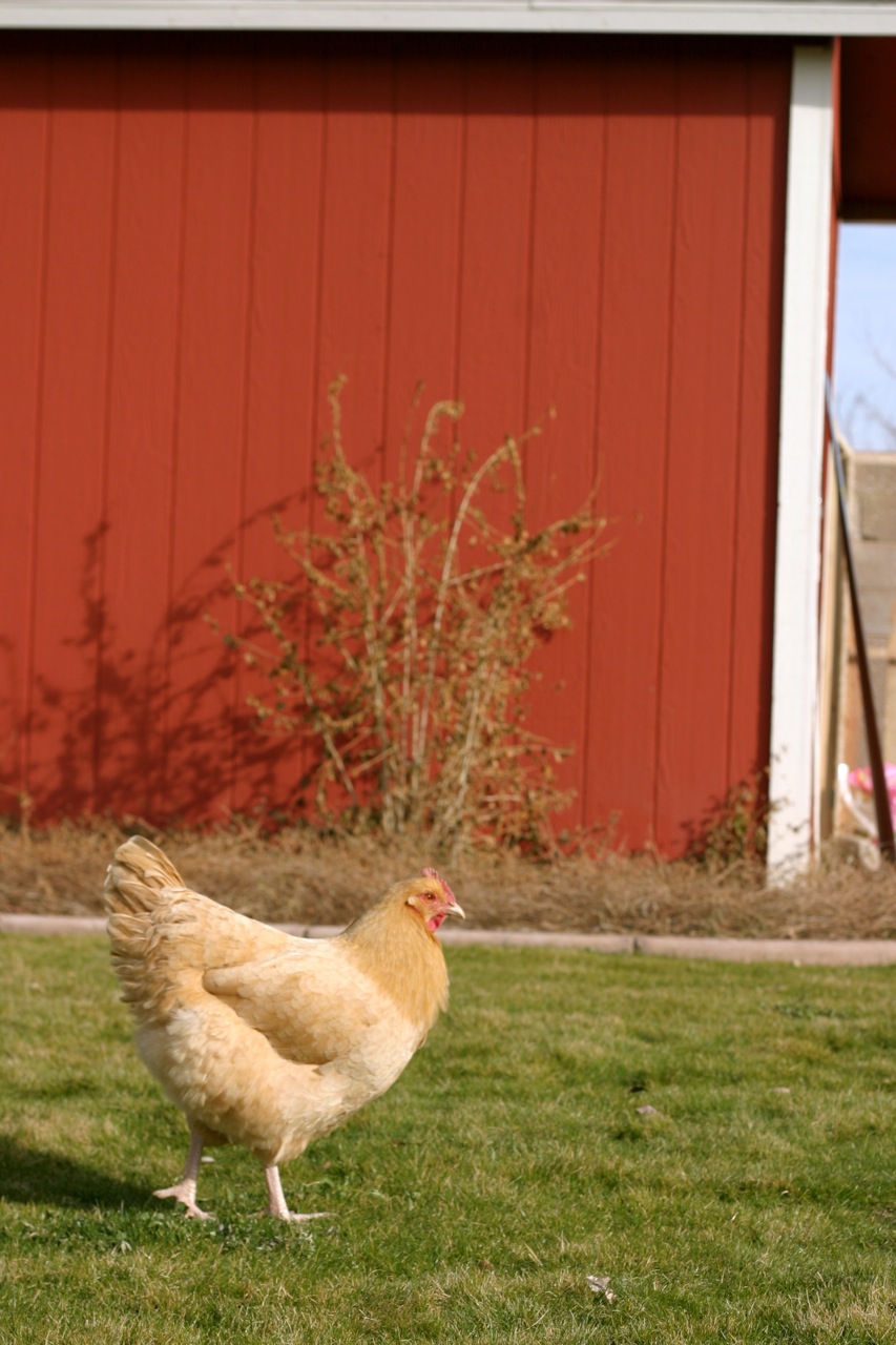 We brought our hens home this weekend. There are ten of them, each a different color, which is quite convenient when choosing names. So far, we love them. They are silly and tame and about a million times easier than our dog was. (Happily, Champ moved across the street last summer.) We are not dog people. But we might be chicken people.